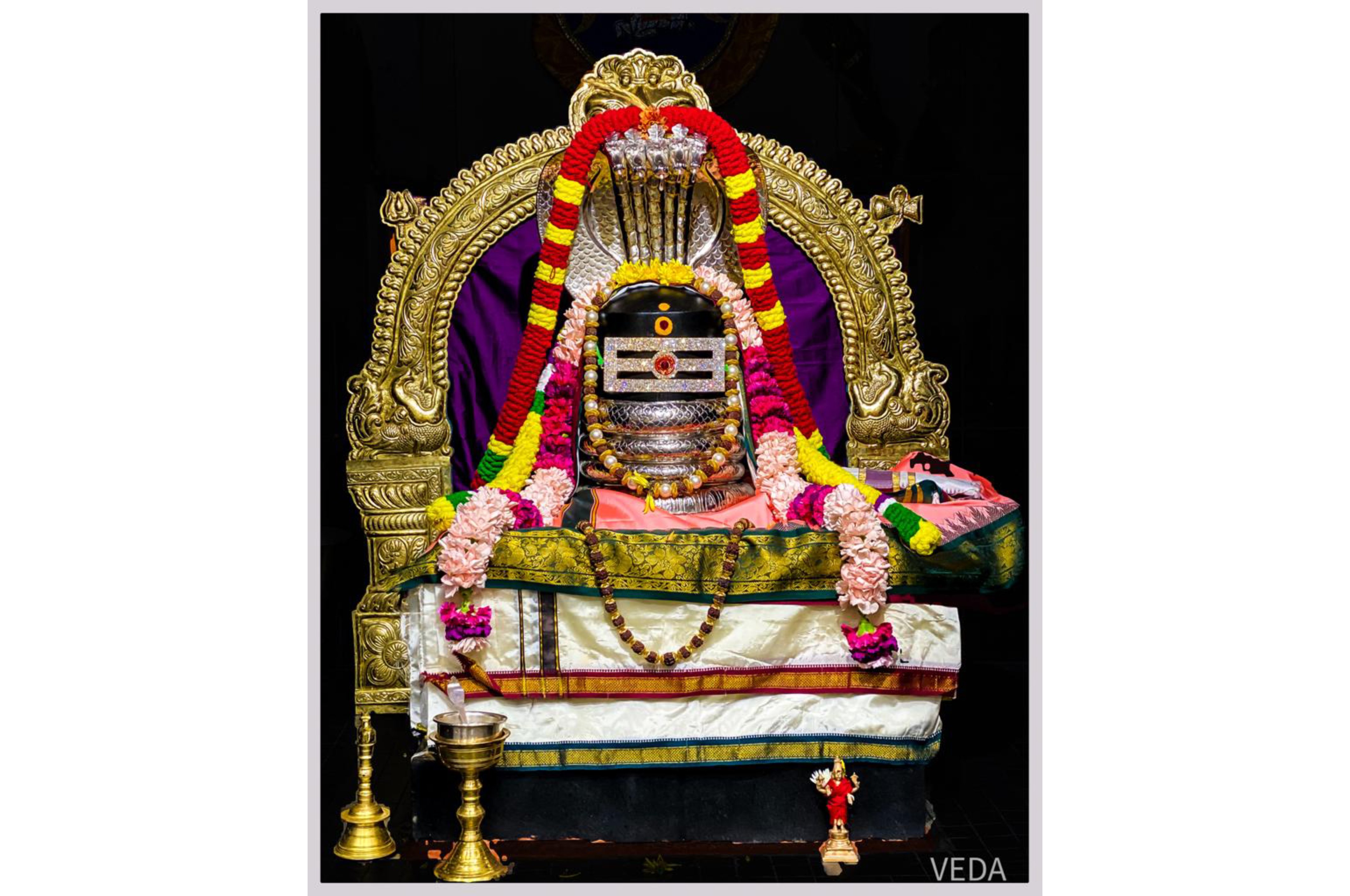 Lord Venkateswara has been invocated as the presiding deity along with Lord Shiva, Devi Durga and 12 other deities in the current premises. Regular daily services are being carried out and on special occasions VEDA is conducting free Samuhika Poojas like Navaratri festival, Lakshmi Pooja, Ganapathy Pooja, Srinivasa Kalyanam, Rudrabhishekam, Upakarma to name a few.
